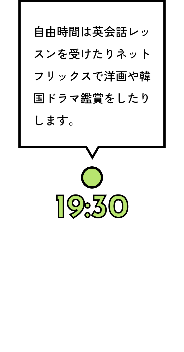 - はい、できていると思います。残業せざるを得ないときもありますが、基本的には定時に上がれますし、有給もしっかり取れます。終業後は、仕事のことを考えすぎないように切り替えるようにしています。